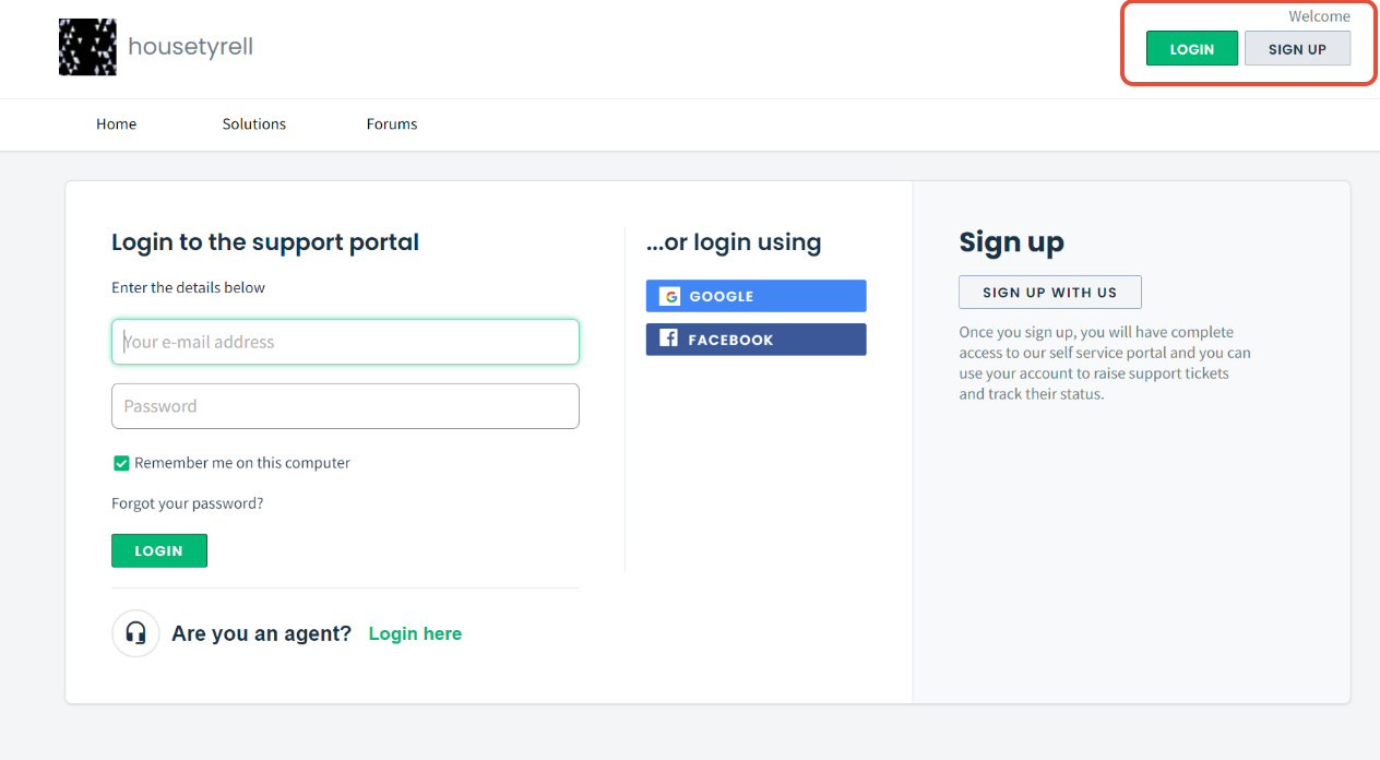 Faça com que seus clientes façam login antes de criarem um ticket ou vejam sua base de conhecimento e fóruns criando uma nova conta ou usando o Single Sign-on através do Google ou Facebook. Nesses casos, o endereço de e-mail será o campo principal por meio do qual o contato será criado.