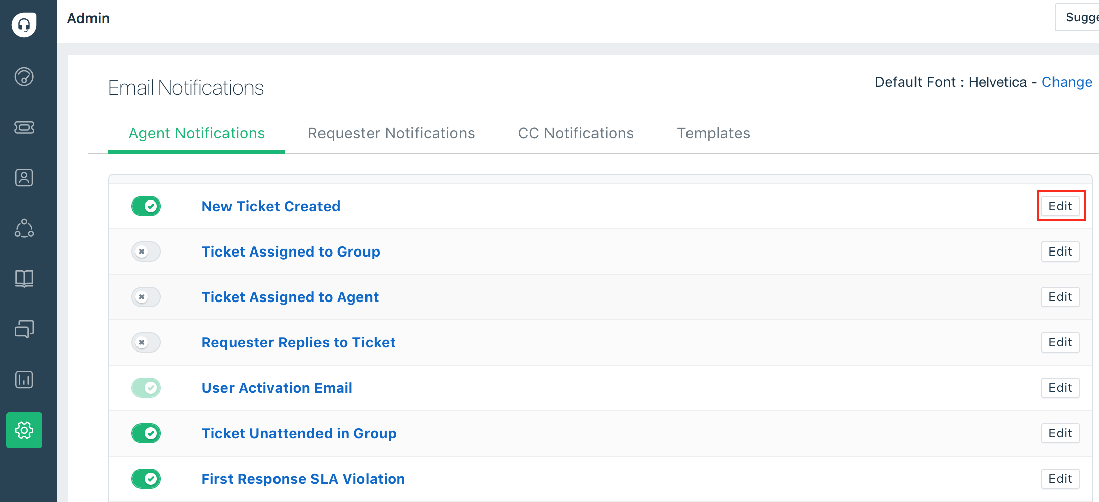 - Clique em Admin> Configurações gerais> Helpdesk .