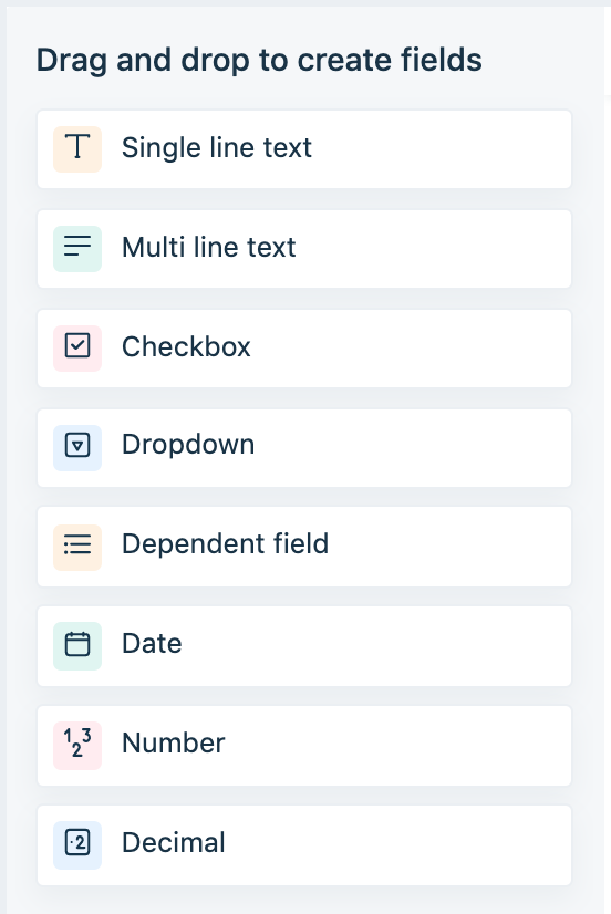 O Freshdesk tem diferentes tipos de campos de tíquetes que permitem capturar vários tipos e níveis de informações. Por exemplo, você pode usar campos de texto de uma linha para coletar informações de uma linha, como o nome da empresa, e pode adicionar campos suspensos para dar a seus clientes uma lista de opções para escolher.