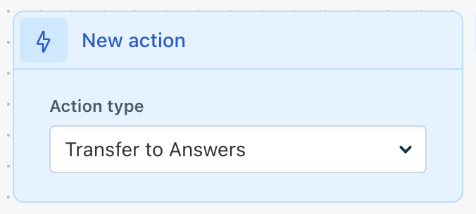 - Use o construtor de bot para adicionar a ação Transfer to Answers para acionar o módulo Answers.