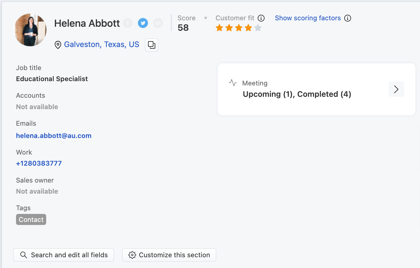 Nota: Após a conclusão de uma reunião, um resultado pode ser adicionado na sobreposição Editar Reunião como Interessado , Mensagem deixada , Sem resposta , Não interessado ou Não foi possível acessar .