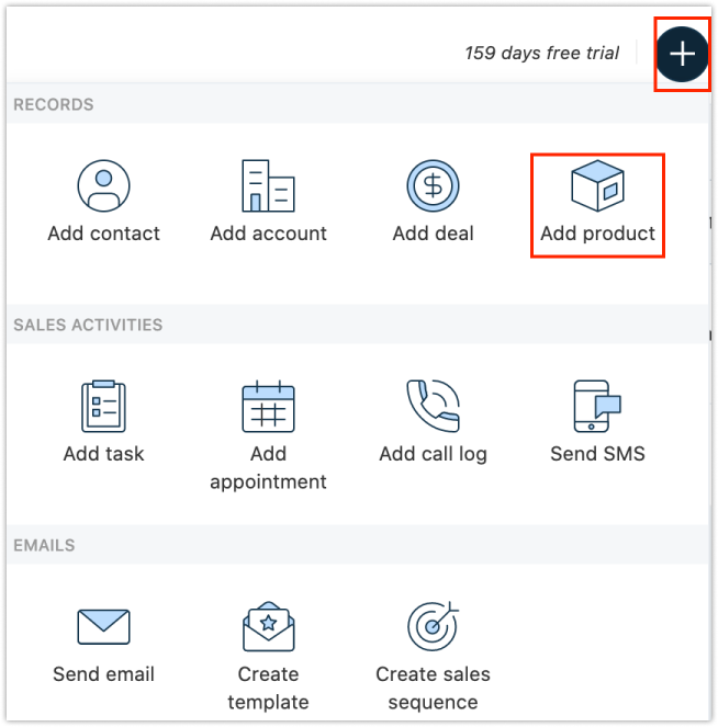 Usando o módulo de produtos, você pode trazer os produtos (hardware ou software) ou serviços que você oferece para o CRM, associá-los aos seus negócios e definir o tipo de preço.
