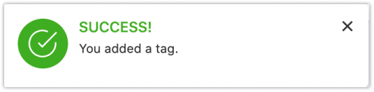 As tags criadas aqui são consideradas tags padrão se a alternância de sugestões privadas estiver ativada. Depois que uma tag é criada, uma notificação de sucesso é exibida.