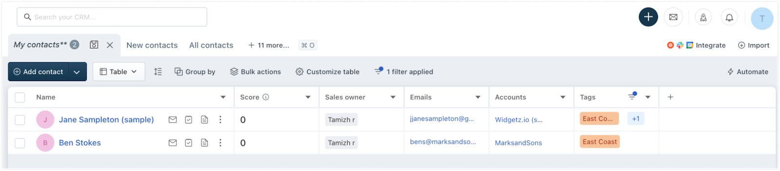 Tags são identificadores exclusivos que permitem aos usuários rotular registros e ajudam a simplificar a classificação. Os usuários podem criar e acessar tags para qualquer um de seus registros—Contatos, Contas, Negócios e modelos de e-mail.