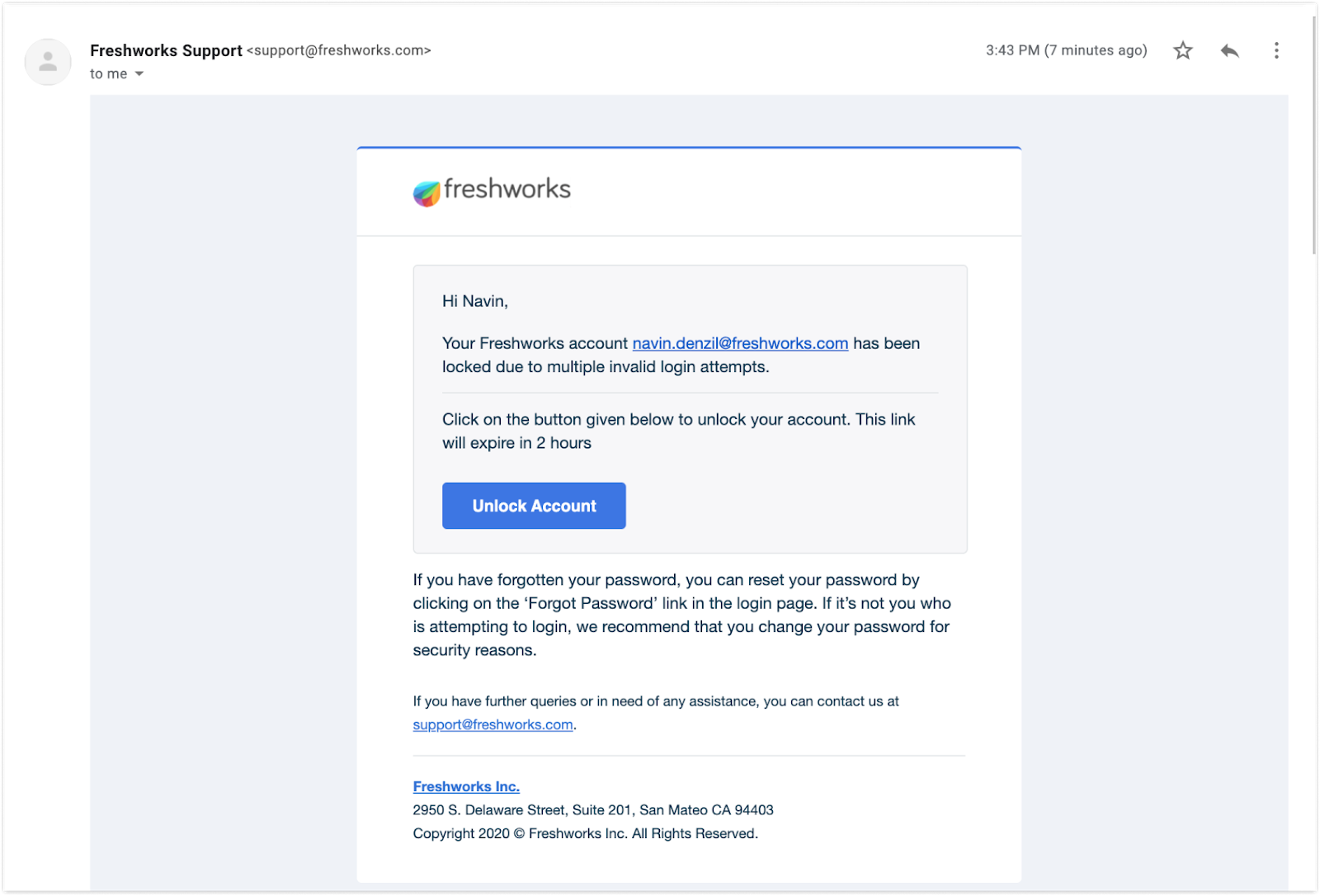 - Você também receberá um e-mail com um link de desbloqueio enviado para seu e-mail assim que sua conta for bloqueada. Você pode clicar no link para desbloquear sua conta imediatamente.