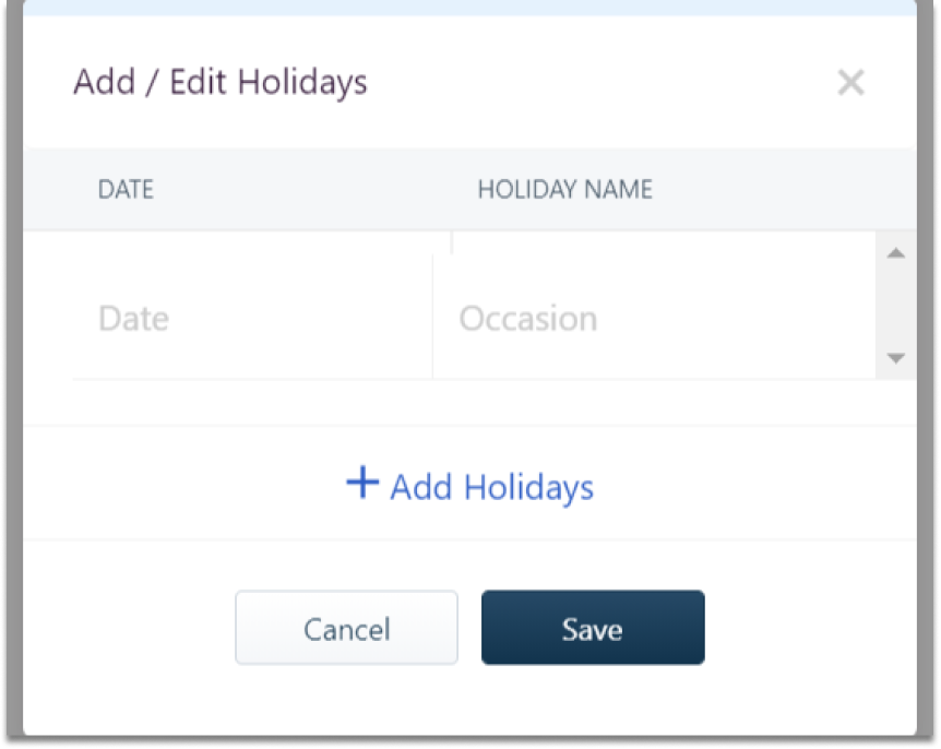 - Na janela pop-up, clique no link Adicionar feriados e insira a data e a ocasião dos feriados que deseja adicionar.