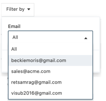 Para filtrar os e-mails, clique em Filtrar por e escolha um endereço de e-mail nos resultados exibidos. Clique.