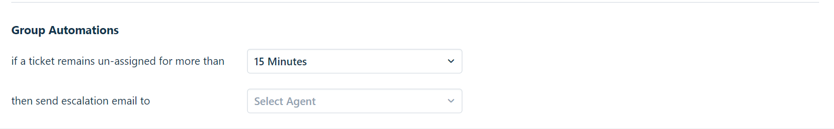 Clique no menu suspenso Automações de grupo e selecione a duração (minutos/dias) após a qual os e-mails de escalonamento devem ser enviados.