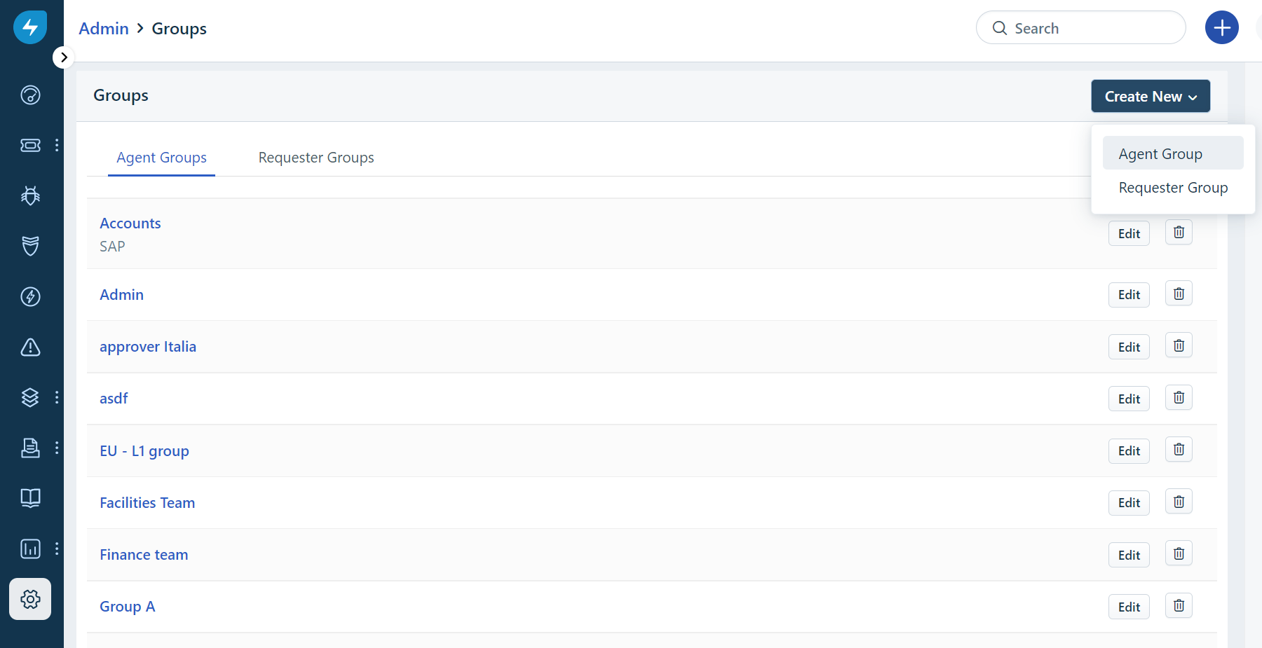 Clique no botão Criar novo no canto superior direito e selecione Grupo de agentes .