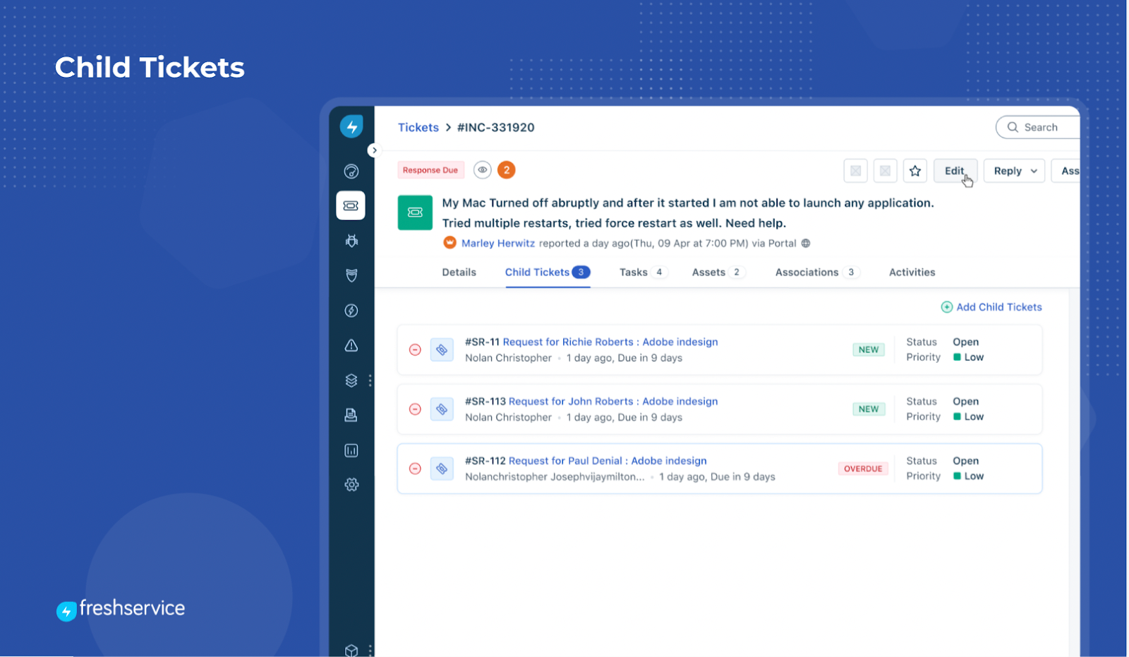 Como forma de reconhecer e recompensar a contribuição ou influência de determinados solicitantes importantes, criamos um crachá VIP e você também pode identificar imediatamente se um relatório é um ticket, problema ou alteração com um crachá de prioridade com ícones de módulo .