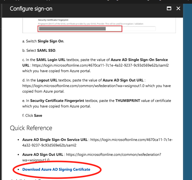 7. Clique em Baixar certificado de assinatura do Azure AD e execute as ações abaixo para convertê-lo no formato Base 64.