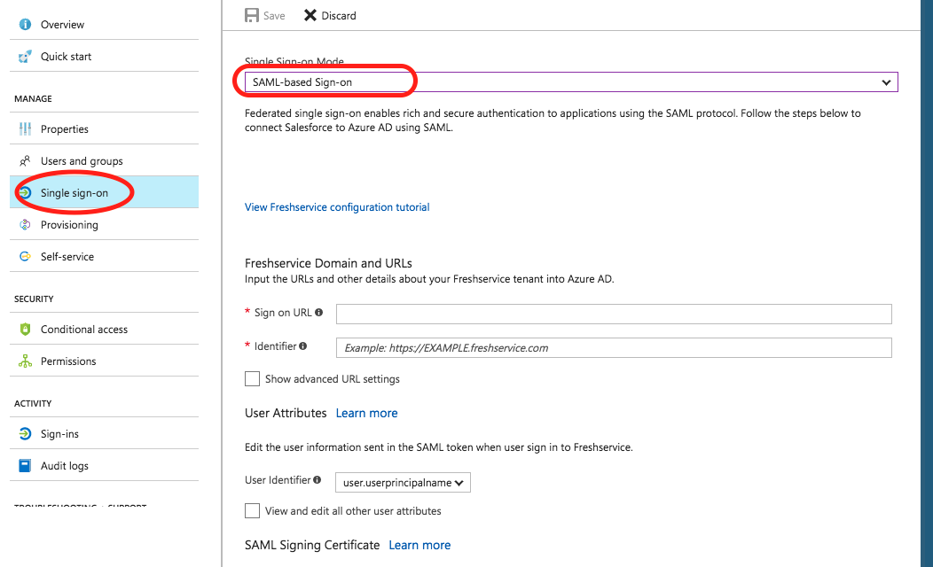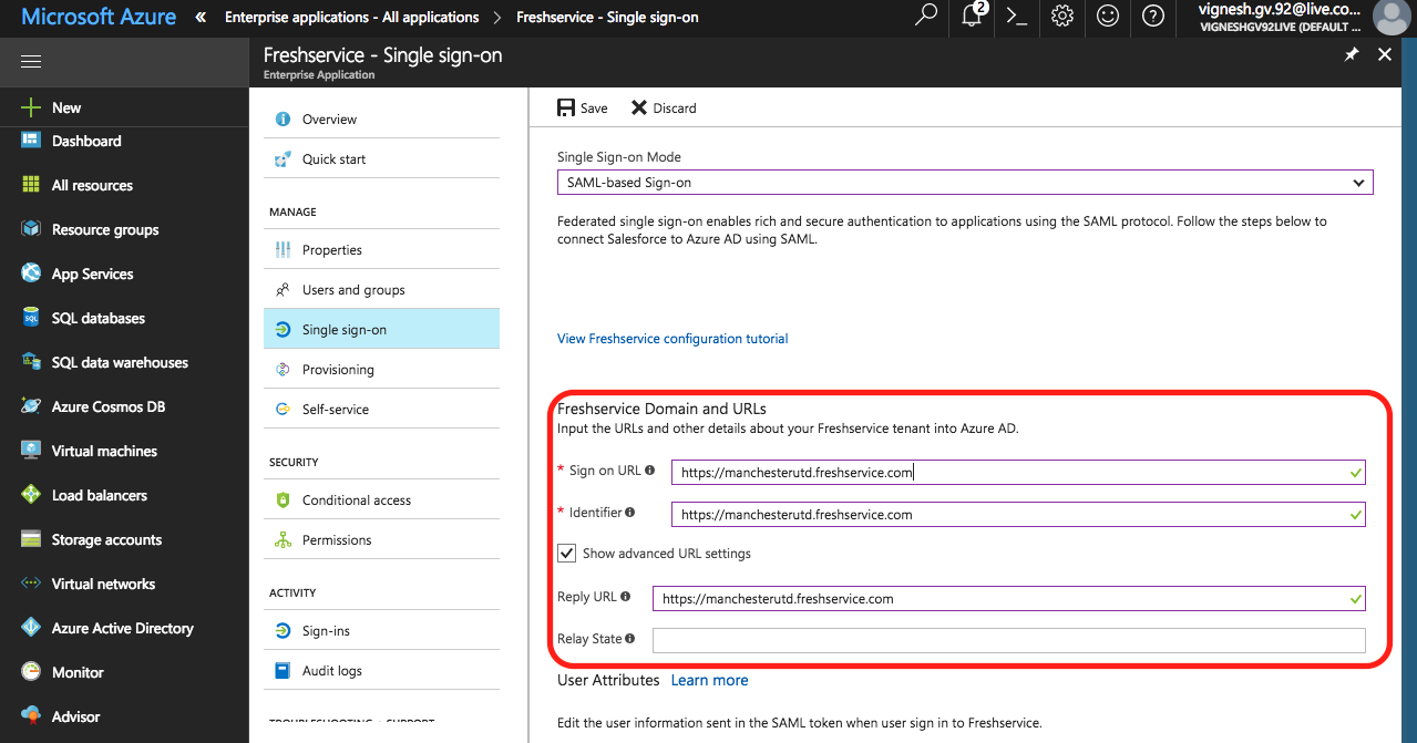 Nota: Se você se inscreveu no Freshworks Suite of Products a partir de fevereiro de 2020, pode configurarLogon único do Azure AD para Freshservice usando sua conta de organização do Freshworks .