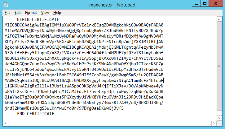 11. Abra o certificado convertido usando o Bloco de Notas.
