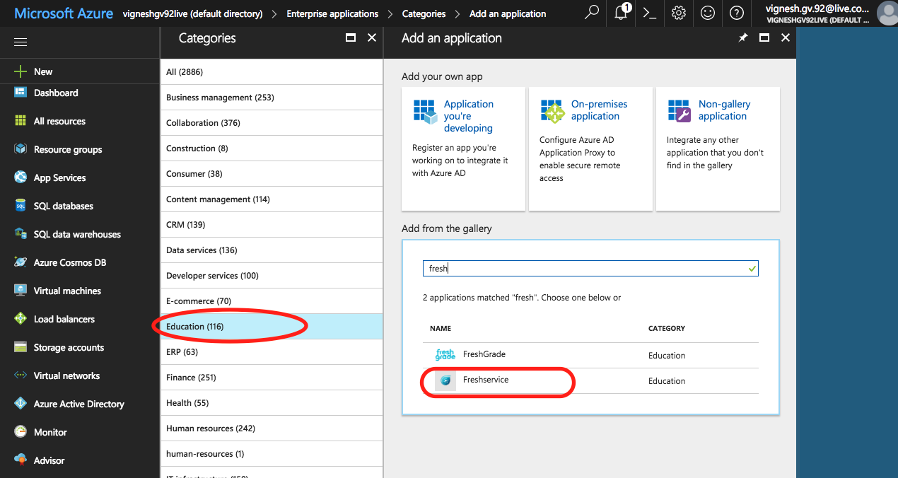 2. Selecione New Application e escolha Freshservice em Education e clique em Add .