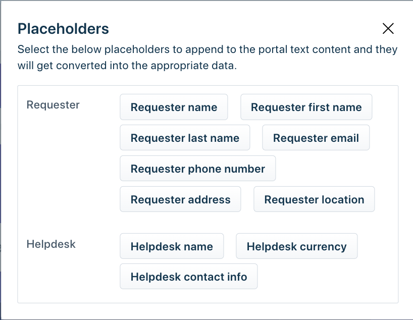 Espaços reservados que podem ser adicionados: