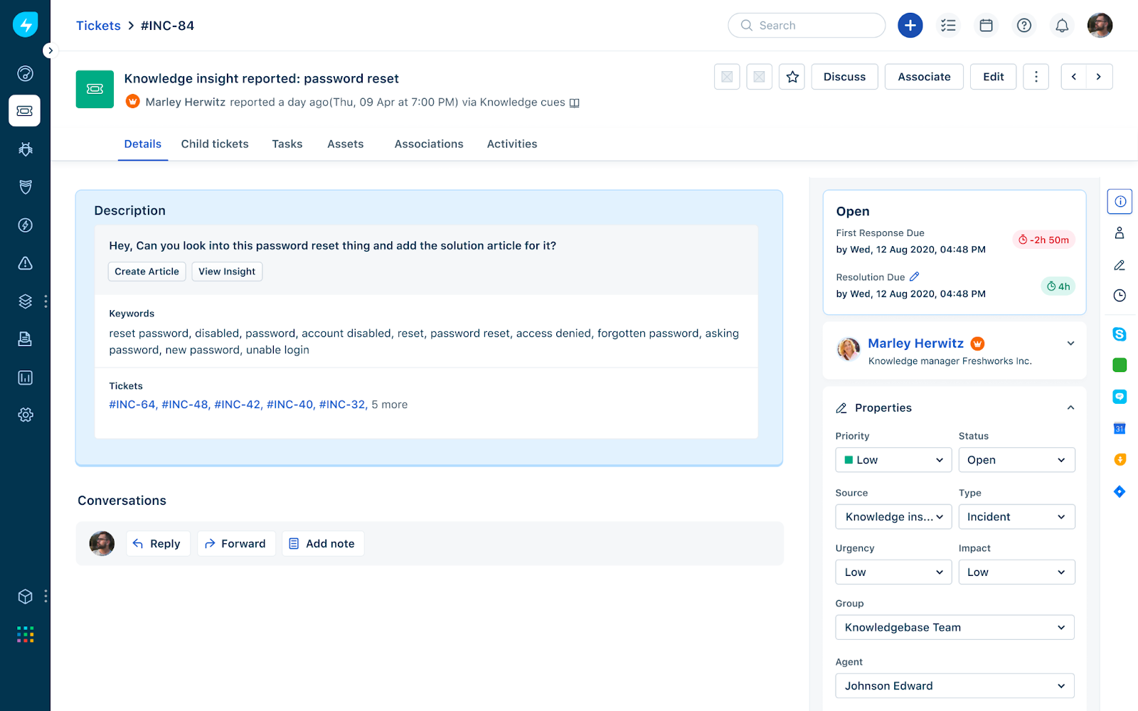 Você pode atribuir o insight a um agente como um ticket para criação de conhecimento. O ticket criado conterá os detalhes necessários ao SME/agente para resolvê-lo criando o conteúdo apropriado.