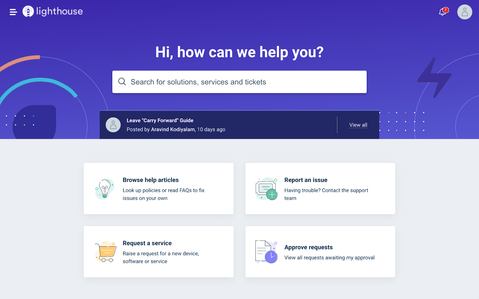 Com o designer de portais sem código do Freshservice, pule o gerenciamento de código volumoso para criar portais localizados acessíveis sem código. A interface gráfica do usuário é fácil de usar e projeta portais personalizados rapidamente, sem a necessidade de conhecimentos técnicos prévios.
