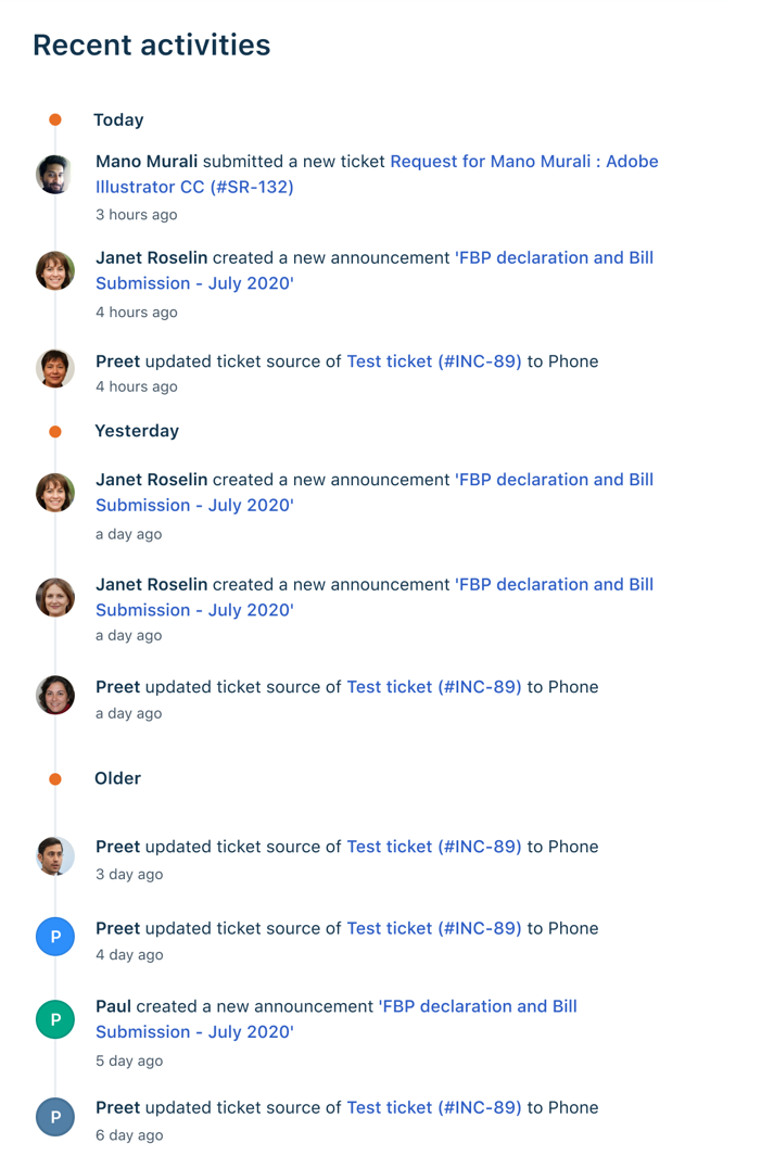 Para rastrear as atividades em sua conta, agora você pode visualizar as atividades recentes em uma ordem de linha do tempo organizada