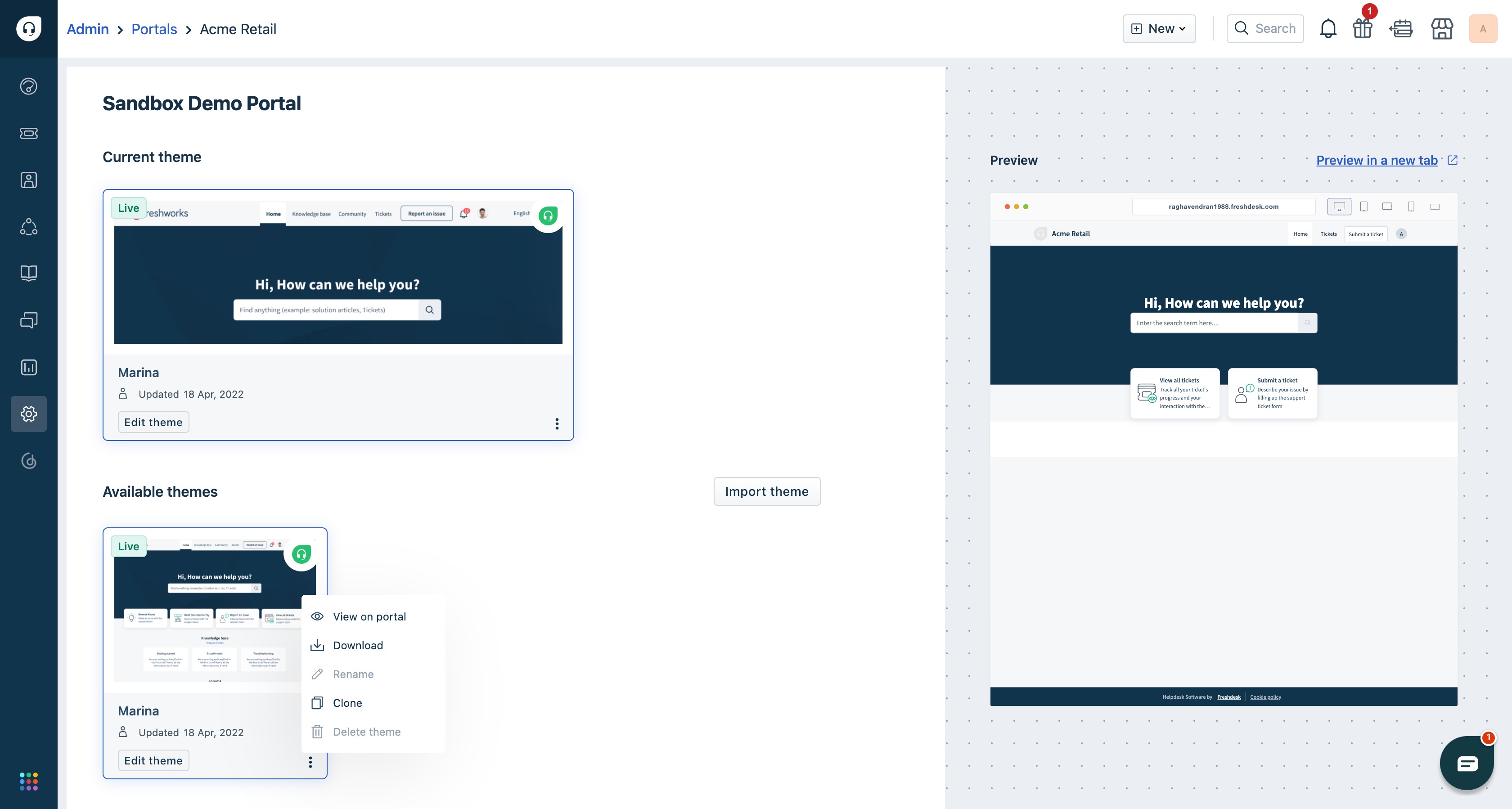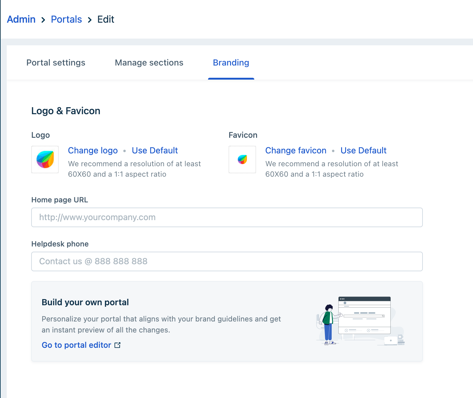 | Informações de contato do portal | Número de telefone especificado no Freshdesk |