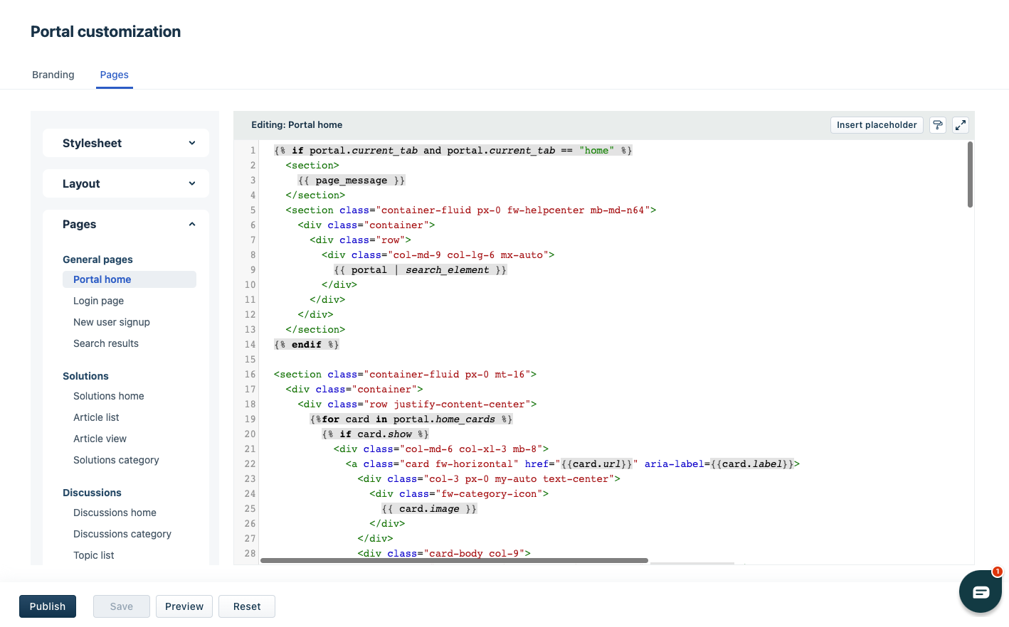 | URL de login do portal | URL de login do portal de suporte (também disponível para usuários anônimos) |