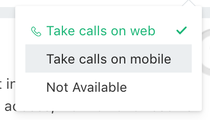 Seus agentes podem ter total flexibilidade quanto a quando e onde desejam receber chamadas. A disponibilidade do agente será mostrada no canto superior direito do helpdesk, ao lado da foto do perfil do agente.
