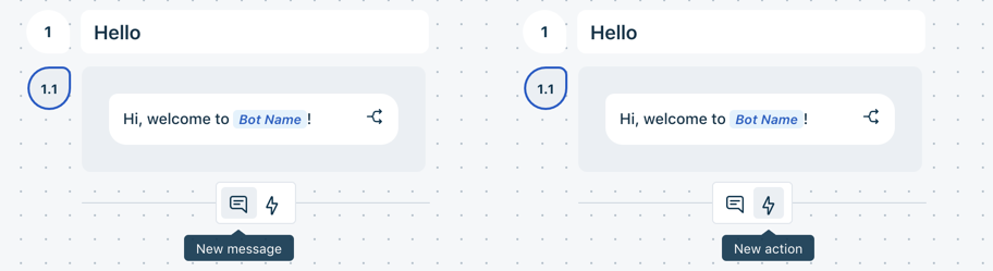 Você pode adicionar quantos diálogos forem necessários a um único fluxo. Você pode optar por incluir uma mensagem ou uma ação.