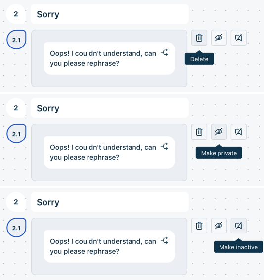 - Excluir uma caixa de diálogo : remova a caixa de diálogo permanentemente do seu fluxo