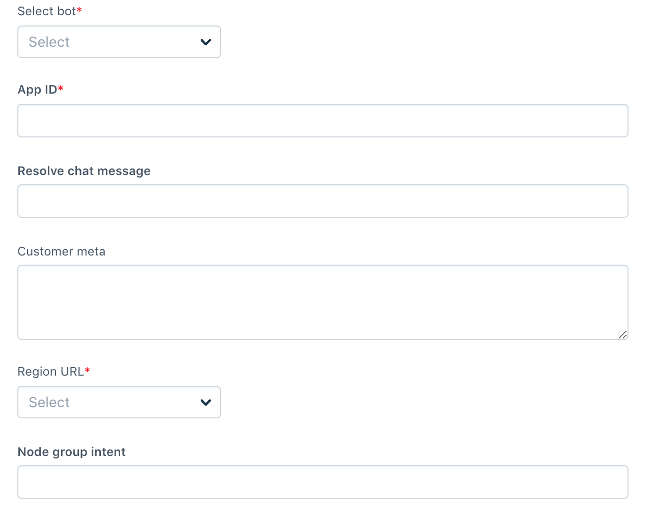 } - No menu suspenso URL da região , escolha o centro de dados da sua conta do Freshchat. Se você não tiver certeza sobre seu data center, escreva para support@freshchat.com .