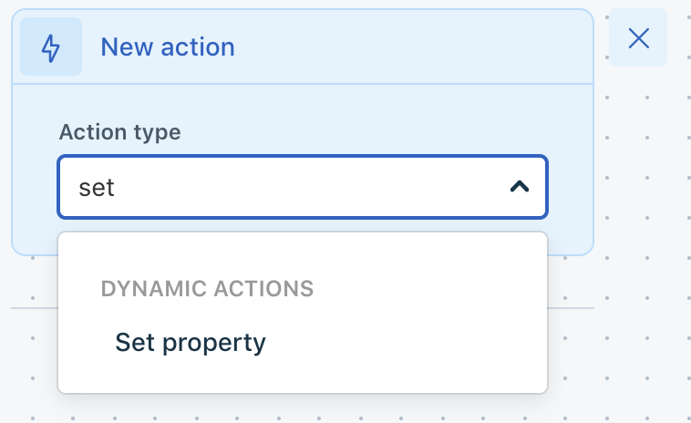 - Clique na caixa de diálogo na qual deseja declarar a nova propriedade > Nova ação > Definir propriedade.