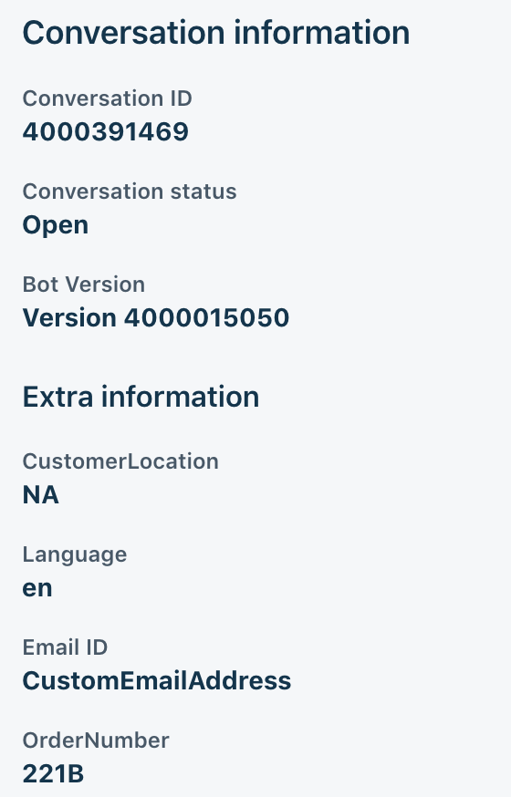 - Essa propriedade também é salva nos logs de conversa. Navegue até Conversas > abra a conversa do cliente e, na barra lateral, você pode ver o valor armazenado