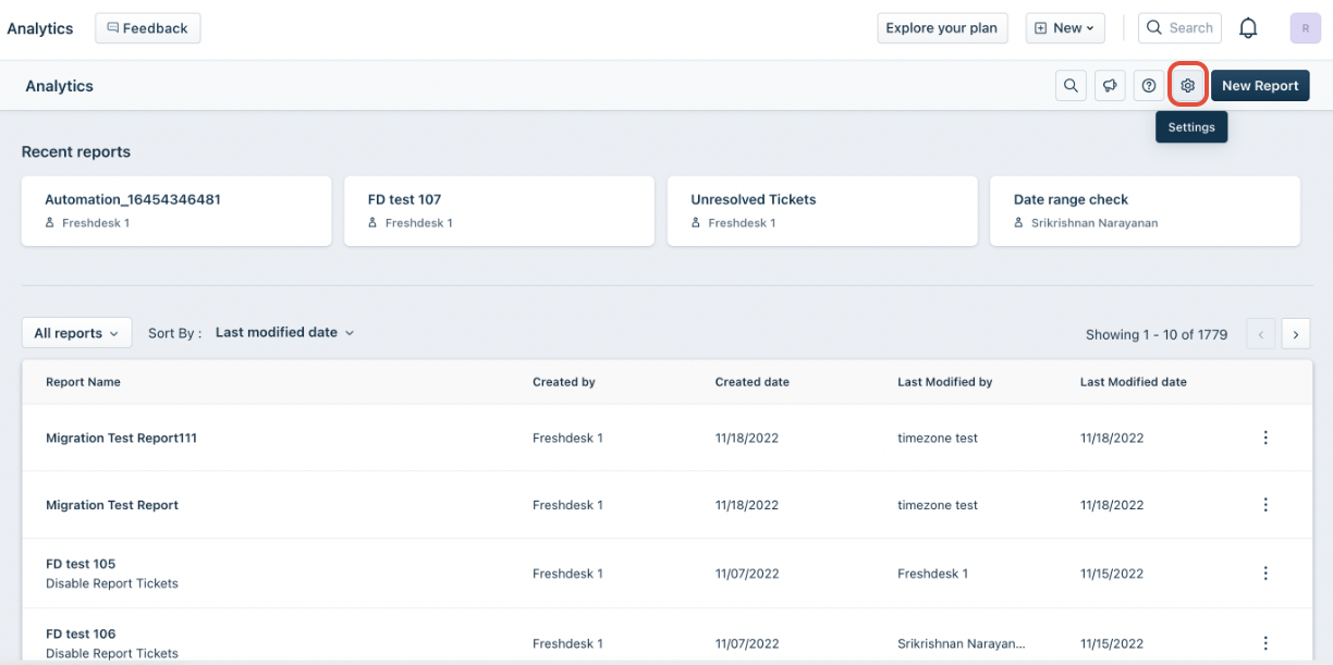 - Clique no ícone Configurações no canto superior direito