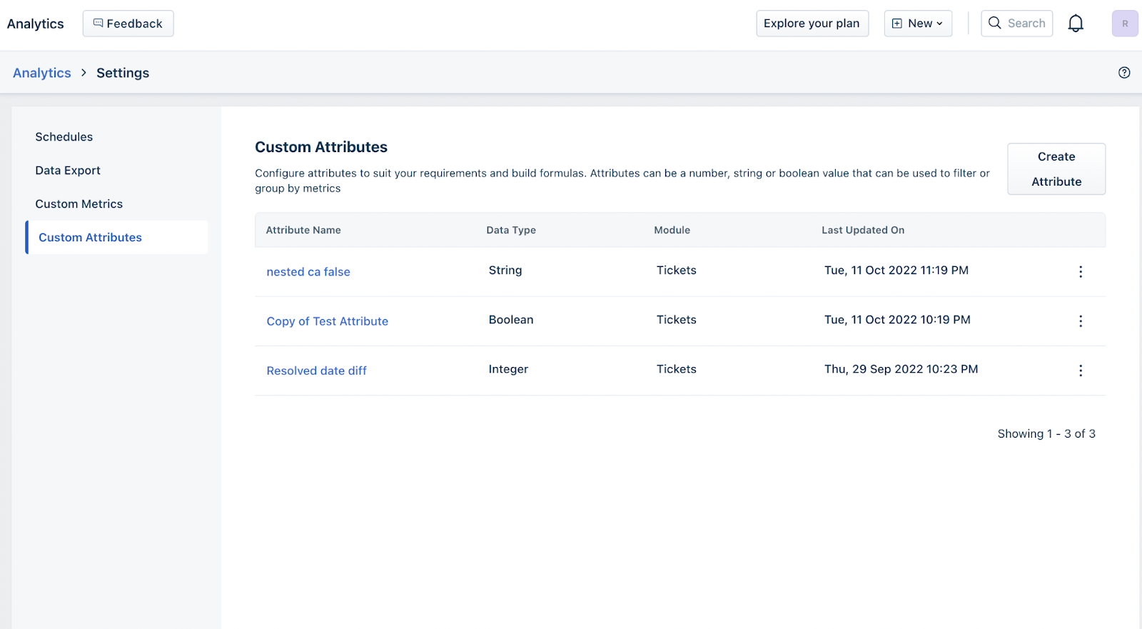 - Clique em “ Criar atributo ” no canto superior direito para começar a criar suas métricas personalizadas usando uma combinação de funções ou operadores.
