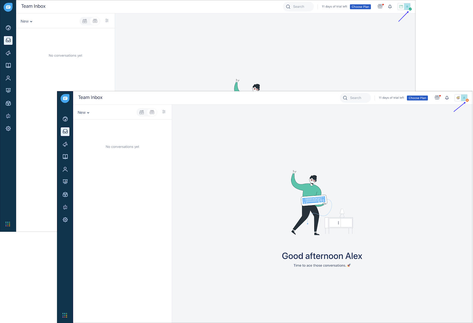 - Os agentes podem ver seu status atual ao lado da foto do perfil no canto superior direito.