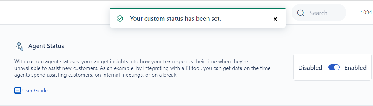 Observação: como administrador, você pode alternar o recurso de status do agente como desativado/ativado. Os agentes só podem usar os status padrão ao mantê-los desativados.
