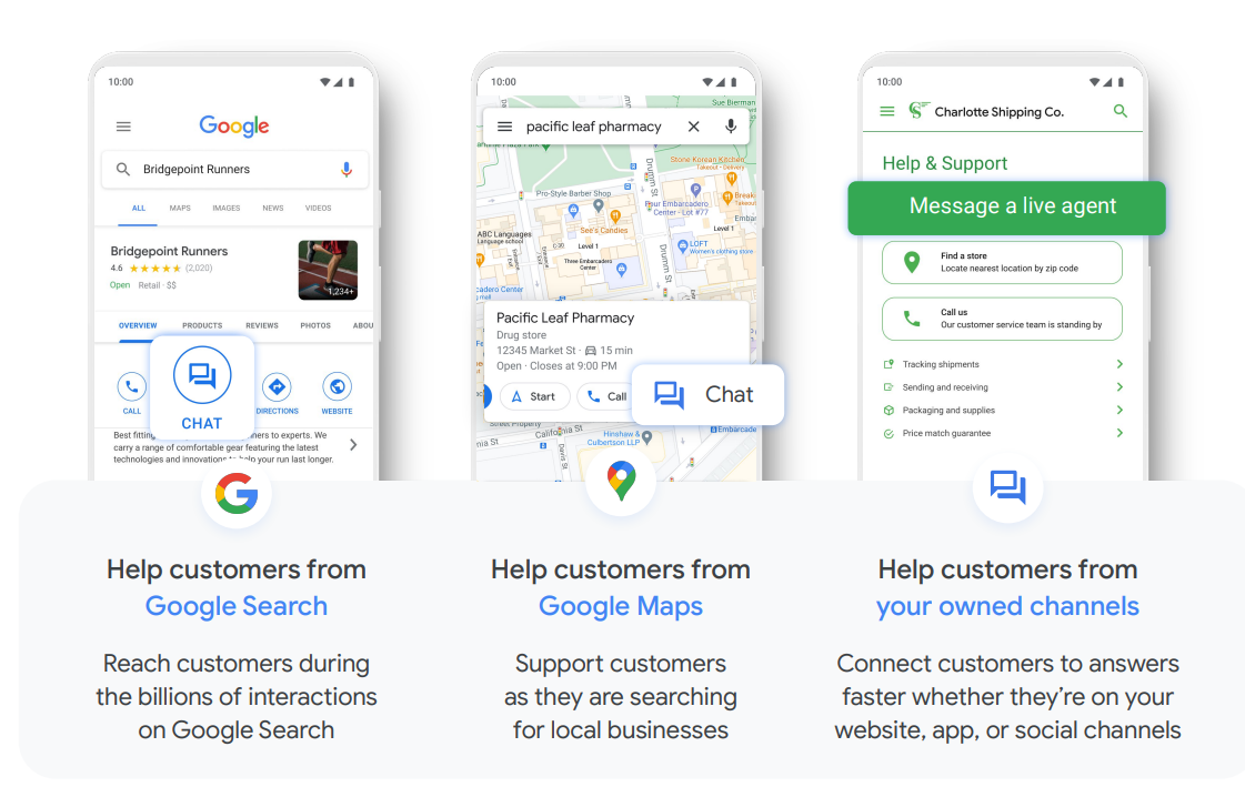 Seus clientes agora poderão entrar em contato com seu suporte por meio da opção de bate-papo na Pesquisa Google e no Google Maps.