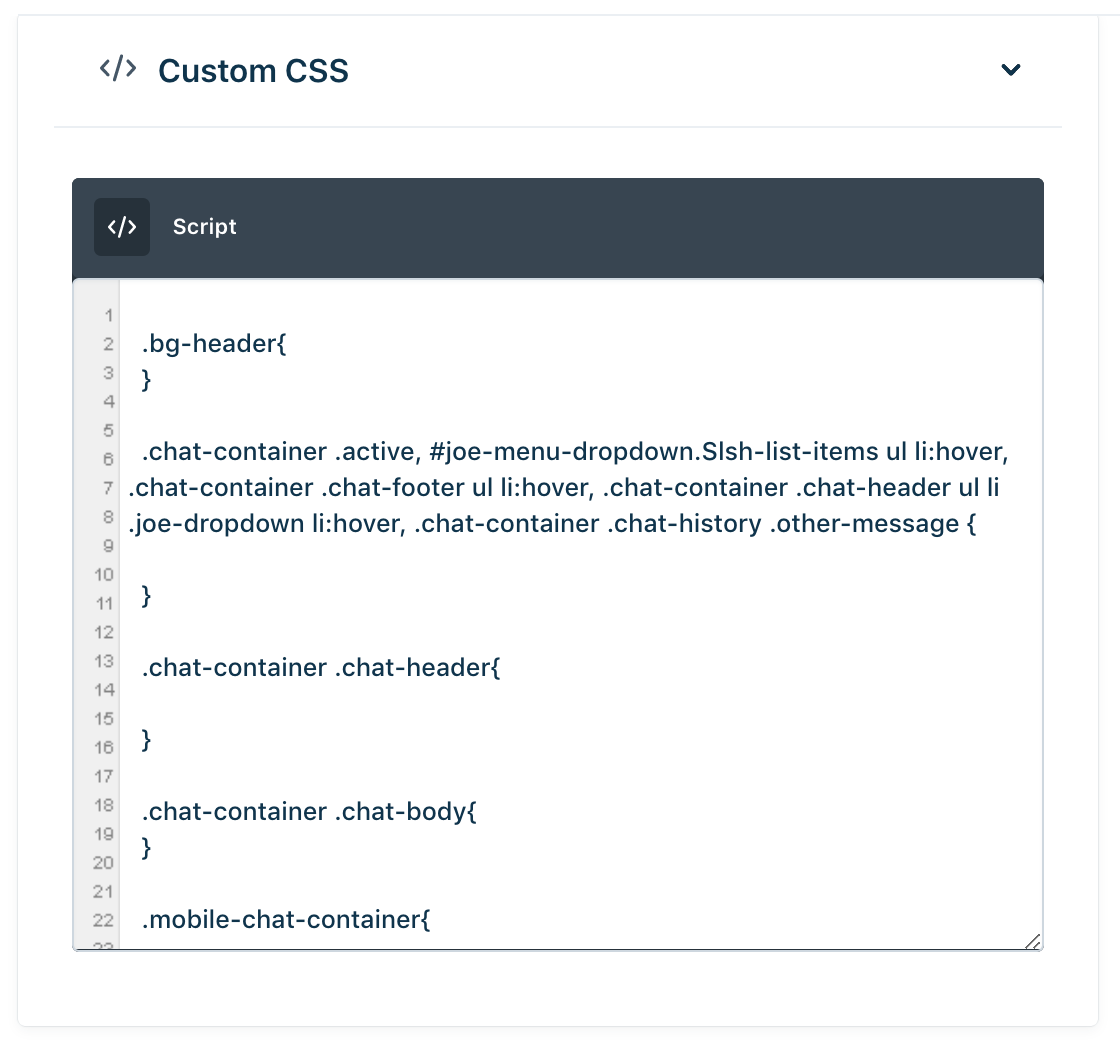 - Se você estiver insatisfeito com as opções de personalização de widgets disponíveis, poderá intensificá-lo aplicando CSS personalizado a partir desta tela. Você pode alterar o tipo de fonte, tamanho da fonte, editar os elementos de cabeçalho e rodapé, entre outros recursos de CSS.