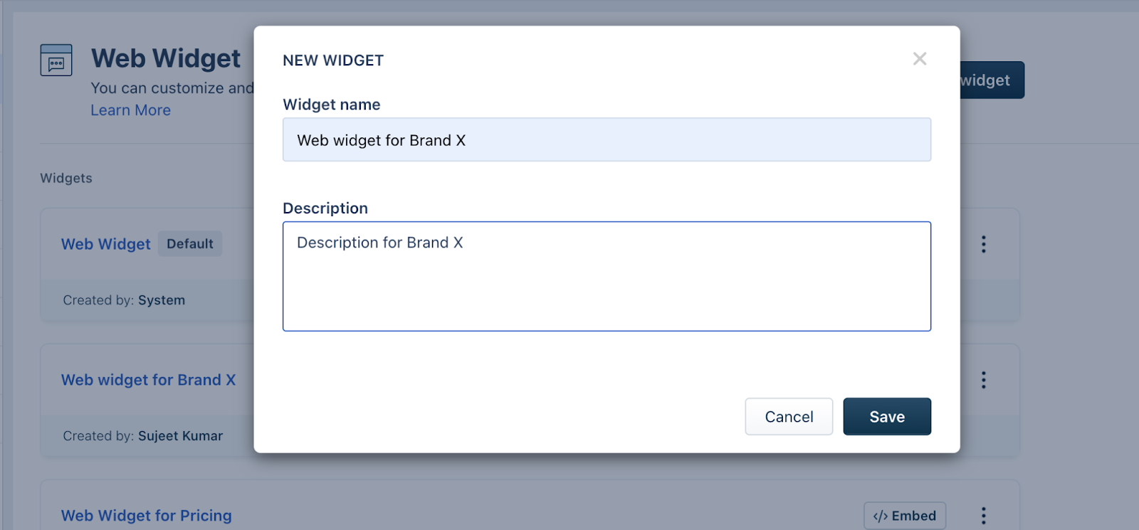 O Freshchat permite criar e implantar vários widgets. Isso permite que você ofereça suporte personalizado aos seus clientes. Por exemplo, a experiência de suporte em sua página 'listagem de produtos' pode precisar ser diferente daquela em sua página 'rastreamento de pedidos'. Da mesma forma, se você opera várias marcas, a experiência de suporte para cada uma delas precisa ser única.