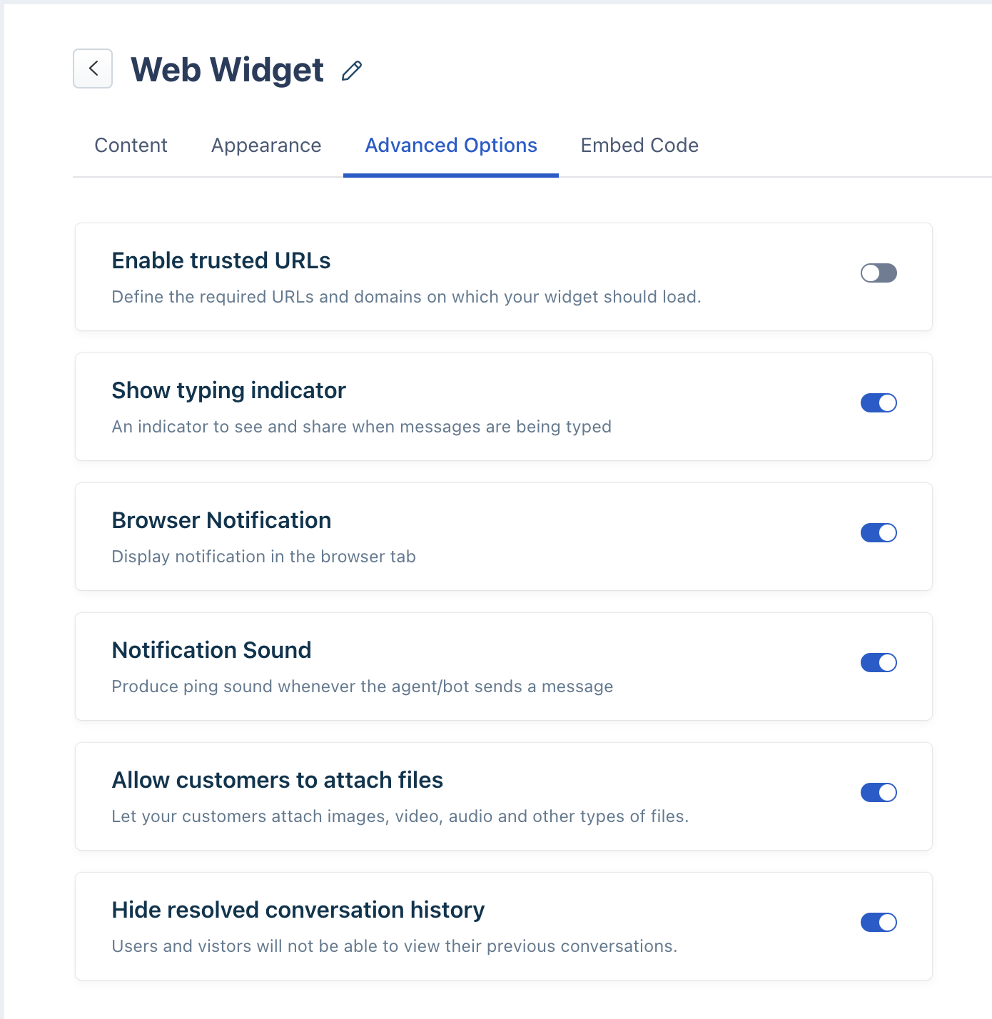 URLs confiáveis permitem que você escolha onde carregar seu widget da web no Freshchat. Com URLs confiáveis, você pode garantir que seu widget possa carregar apenas nos URLs específicos em que você confia.