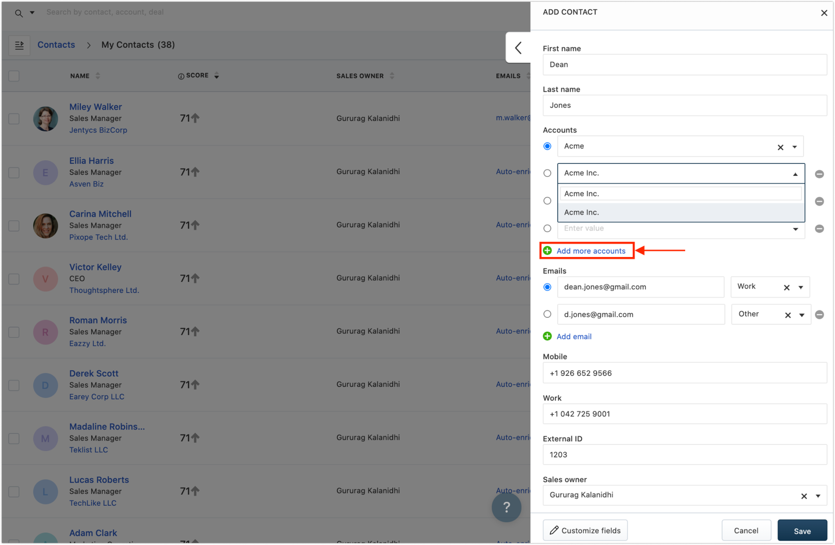 Os usuários podem associar várias contas a um contato. Aqui estão alguns casos de uso em que esse recurso será útil: