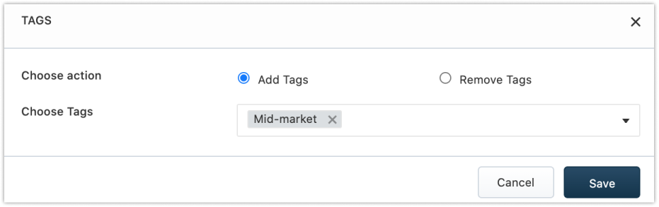 - Adicionar Tags - Para adicionar tags às contas selecionadas.