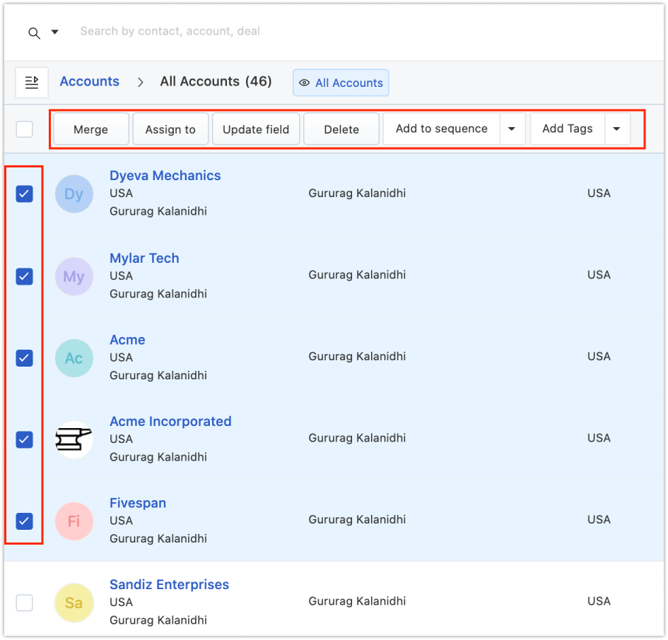 Melhore a produtividade da sua equipe usando ações em massa nas contas.