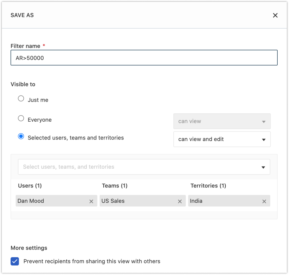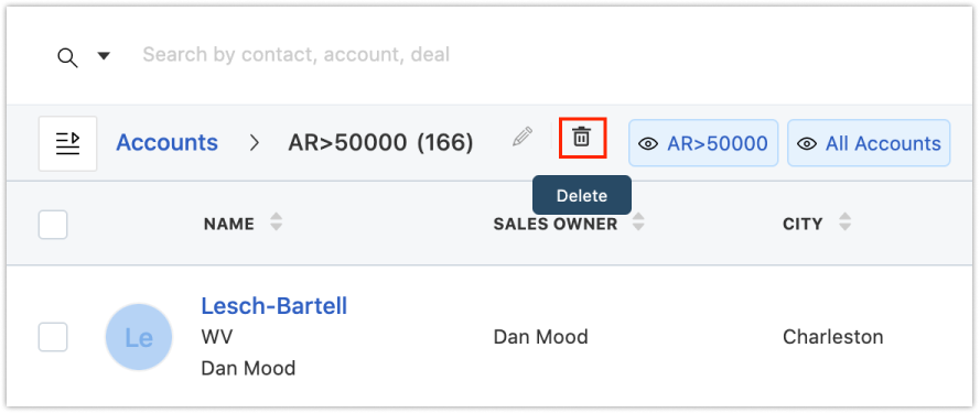 Você pode usar vários filtros para refinar suas listas de contas, salvá-las como visualizações personalizadas e compartilhá -las com sua equipe.