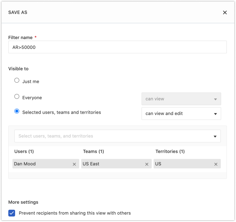Clique no botão Salvar exibição como presente no painel Filtro.