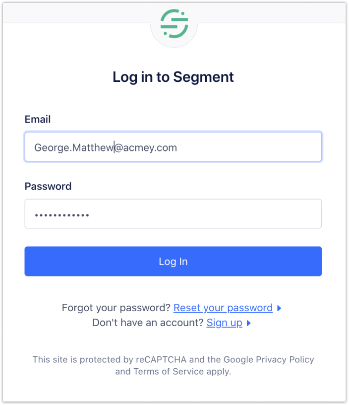 2. Você é redirecionado para a página Segmento, onde pode fazer login na conta.