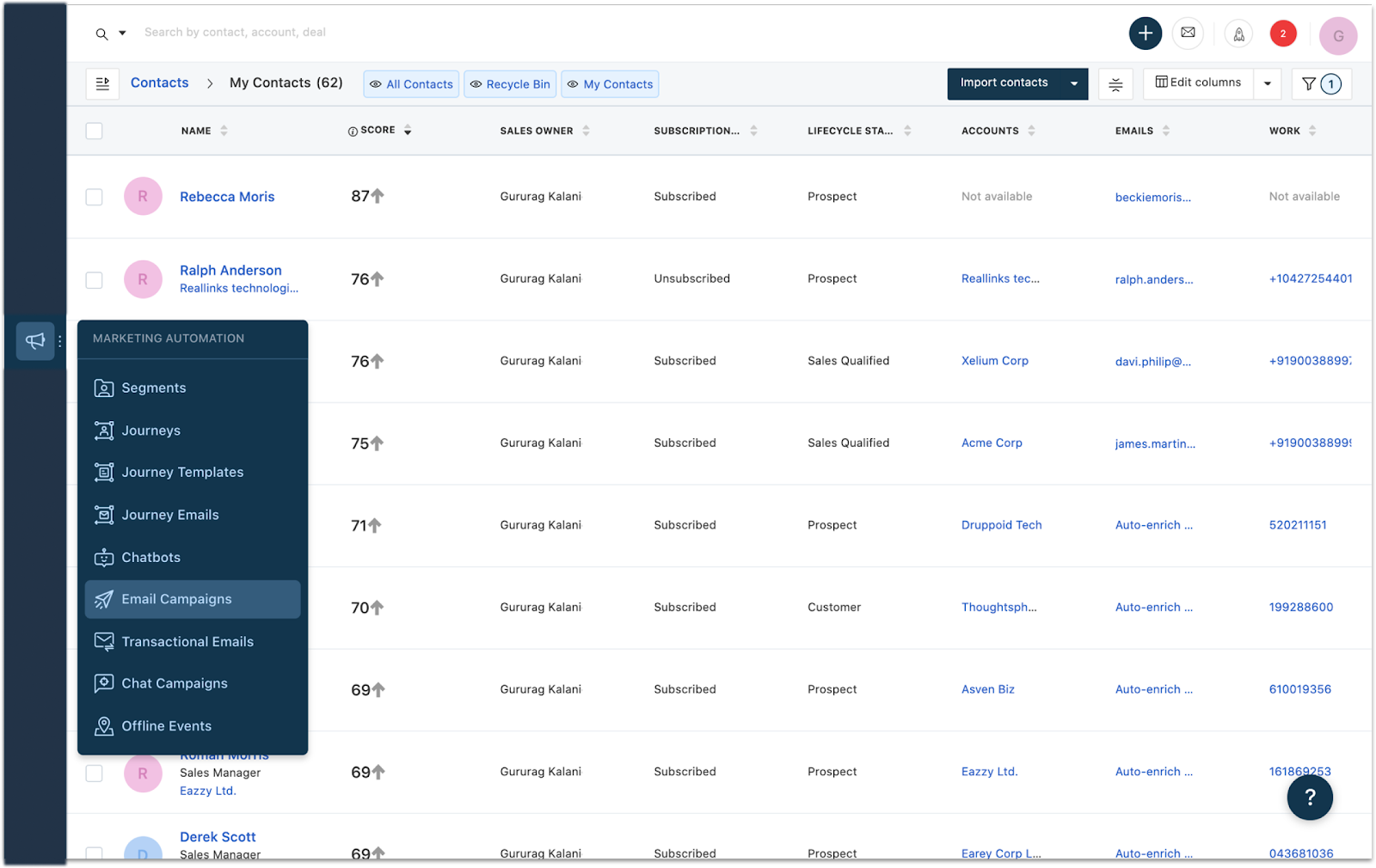 Os e-mails serão entregues mesmo que o domínio não seja verificado no Freshsales. Se john.doe@acme.com não for verificado no Freshsales, o e-mail será enviado com o endereço de e-mail do remetente alterado com base na região. Por exemplo, se John Doe for da Índia, o endereço de e-mail seria john.doe@fmsendcrm.in