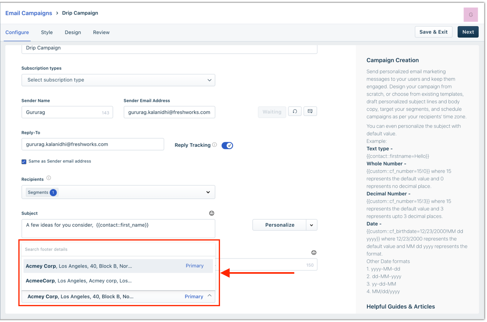 Configure um rodapé para todas as suas campanhas de e-mail para estar em conformidade com a lei CAN-SPAM.
