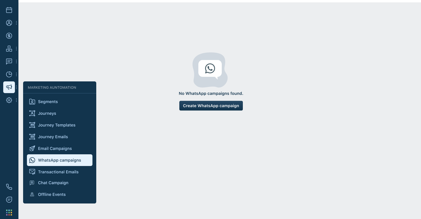 - Localize Campanhas do WhatsApp em Automação de Marketing em sua conta do CRM.
