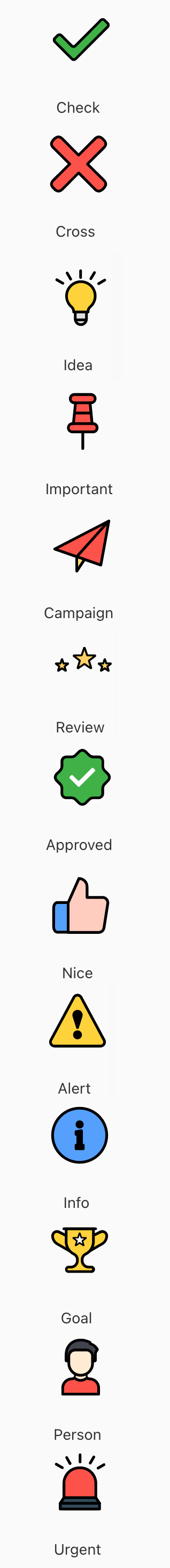 ![]() | Ícones Use ícones cativantes para chamar ações específicas, como anúncios, legendas ou mais. |