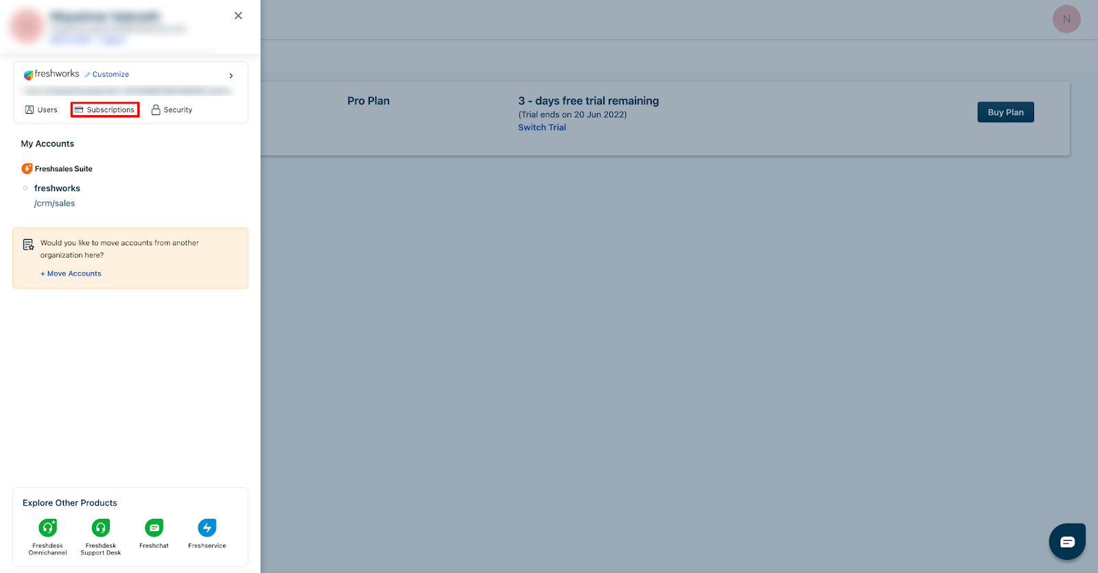 Acesse as assinaturas do switcher. Você será redirecionado para a janela Minhas assinaturas .