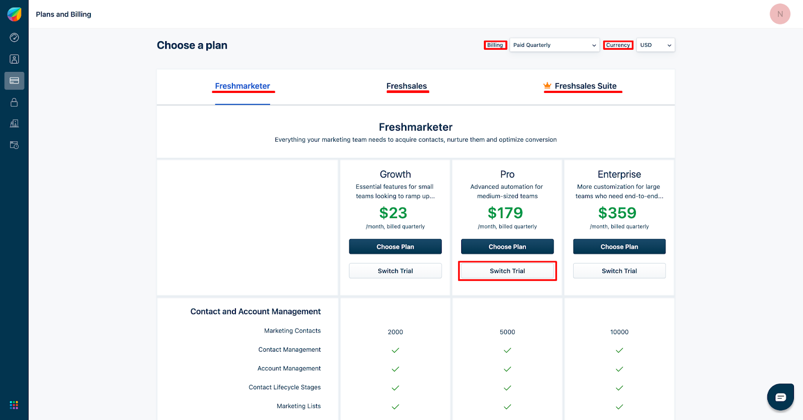 - Depois de selecionar o plano certo para você, clique em Switch Trial